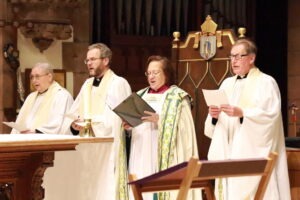 On Sunday afternoon The Cathedral celebrated the Festival of Nine Lessons and Carols, led by Bishop Tricia and attended by His Excellency, the Lieutenant Governor Sir John Lorimer and Lady Phillippa Lorimer. Local MHK Kate Lord-Brennan, and Chair of Peel Commissioners, Ray Harmer, were among those who also took part, with choral music led by the Choir of Cathedral Isle of Man under their Director, Dr Peter Litman.