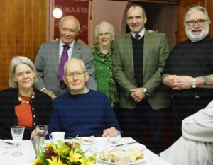 After many years of lively, friendly lay ministry with the Church of England, Paul Bregazzi will no longer be wearing Reader gear in church having decided, aged 85, to stand down this month from the responsibilities of leading services or preaching. Dr Paul Bregazzi’s long ministry was celebrated in Ballaugh Church on Sunday 15th November at an informal celebration lunch to thank him for his faithful commitment to ministry in the parish and the Diocese of Sodor and Man. Many contributed to the lunch which was co-ordinated by June Young and the people who gathered to celebrate Paul’s significant input included Treasury Minister and MHK for Ayre and Michael, Alf Cannan, and his father, former MHK David Cannan.