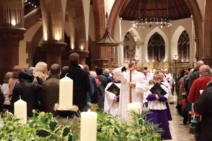 On Sunday afternoon The Cathedral celebrated the Festival of Nine Lessons and Carols, led by Bishop Tricia and attended by His Excellency, the Lieutenant Governor Sir John Lorimer and Lady Phillippa Lorimer.  Local MHK Kate Lord-Brennan, and Chair of Peel Commissioners, Ray Harmer, were among those who also took part, with choral music led by the Choir of Cathedral Isle of Man under their Director, Dr Peter Litman.